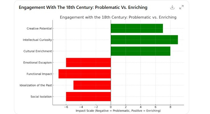 I have been making my own less-exalted forays into data journalism. ChatGPT will answer any question you pose in the form of a graph if you ask it to. Here is its attempt to answer the question “is it possible to be too interested in the eighteenth century?” in the form of a bar graph: